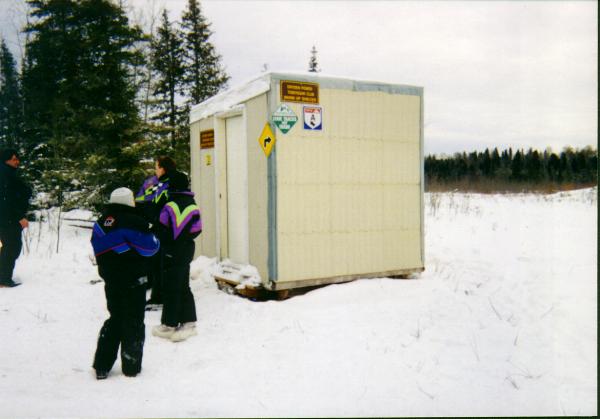 The crew stopping at one of the 5 warm up shacks the power toboggan has located around the area. They each have a small stove in them, good for warming the body and your food if you are inclined to bring a snack.